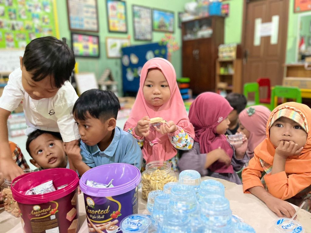 Di setiap kelas, anak-anak kembali bersalaman, menyapa, dan berinteraksi dengan ramah. Tersedia pula hidangan sederhana berupa kue lebaran dan makanan ringan yang dinikmati bersama. Keceriaan semakin bertambah saat murid-murid menikmati ketupat sayur sebagai hidangan khas Lebaran. Mereka tampak gembira makan bersama sambil bercengkerama.
